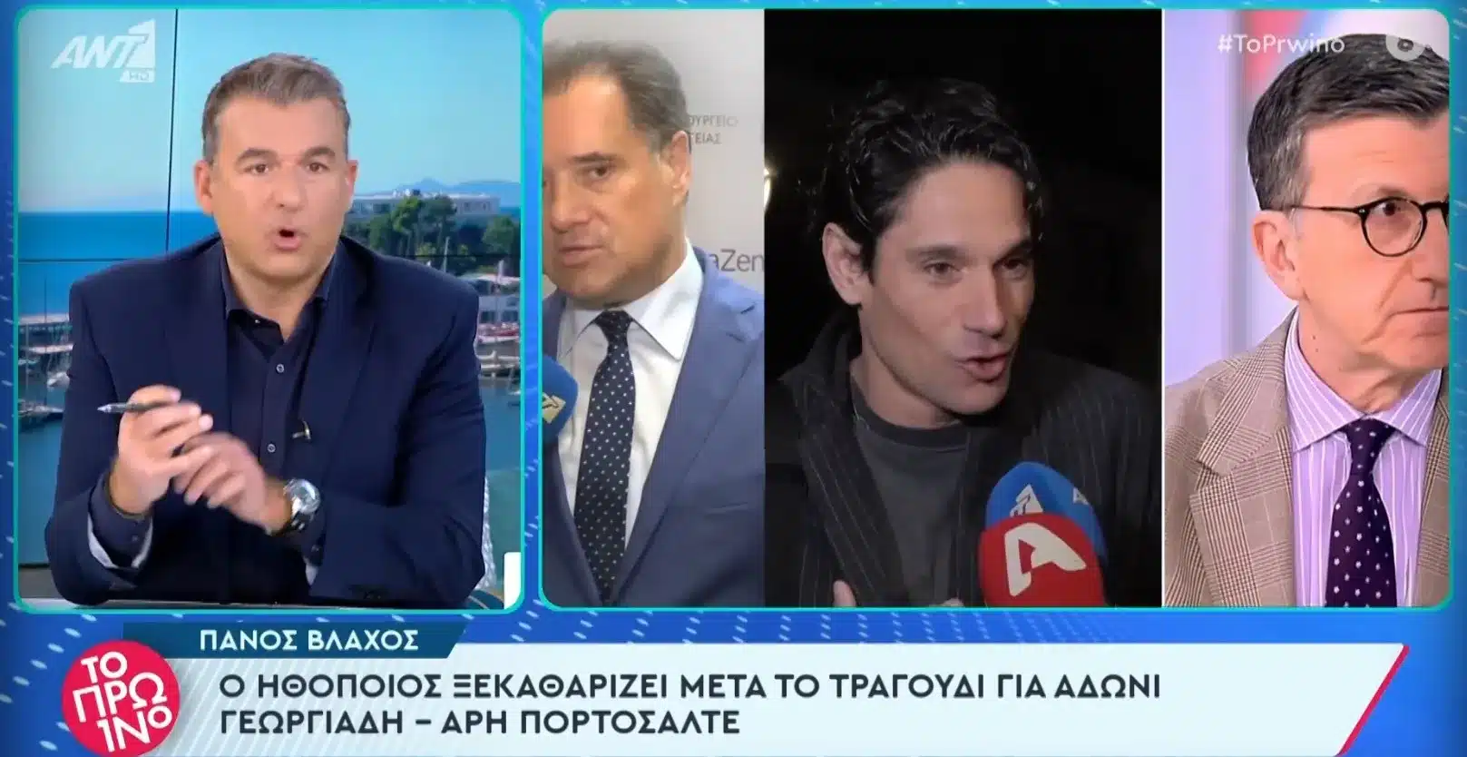 Μετά τον σάλο που έχει προκληθεί με τον στίχο σε τραγούδι που λέει ο Πάνος Βλάχος και αναφέρεται στον Άδωνι Γεωργιάδη και τον Άρη Πορτοσάλτε, ο ηθοποιός απάντησε πρώτη φορά στις κάμερες.