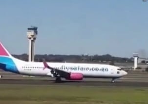 Το κλιπ δείχνει την πτήση FA212 με καπνό να βγαίνει από τον κατεστραμμένο τροχό.