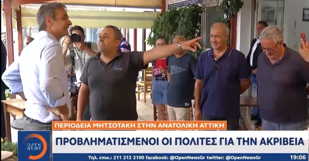 Στο πλαίσιο της περιοδείας του στην Ανατολική Αττική, ο Κυριάκος Μητσοτάκης συνομίλησε με τους πολίτες της περιοχής, αλλά και με αρκετούς καταστηματάρχες. Ένα από αυτούς μάλιστα του εξέφρασε τα παράπονά του για τους υπέρογκους λογαριασμούς ρεύματος που έχουν αυξήσει κατακόρυφα τα έξοδά του.