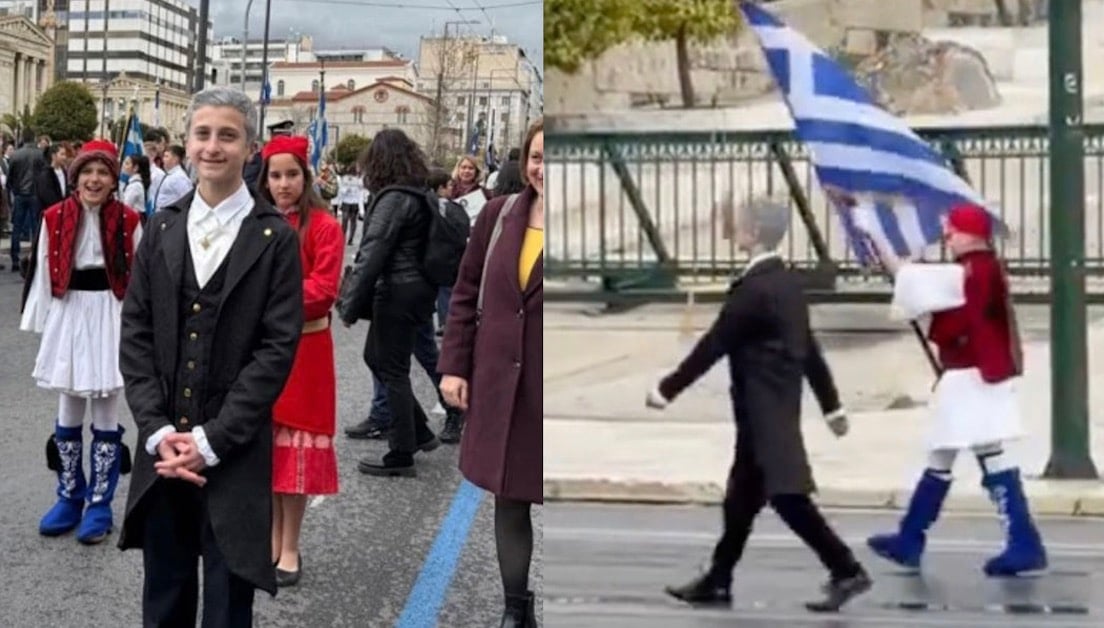 Τα βλέμματα έκλεψε ο 11χρονος Δημήτρης στην μαθητική παρέλαση για την 25η Μαρτιου στο κέντρο της Αθήνας, ο οποίος επέλεξε να παρελάσει ντυμένος… Καποδίστριας.