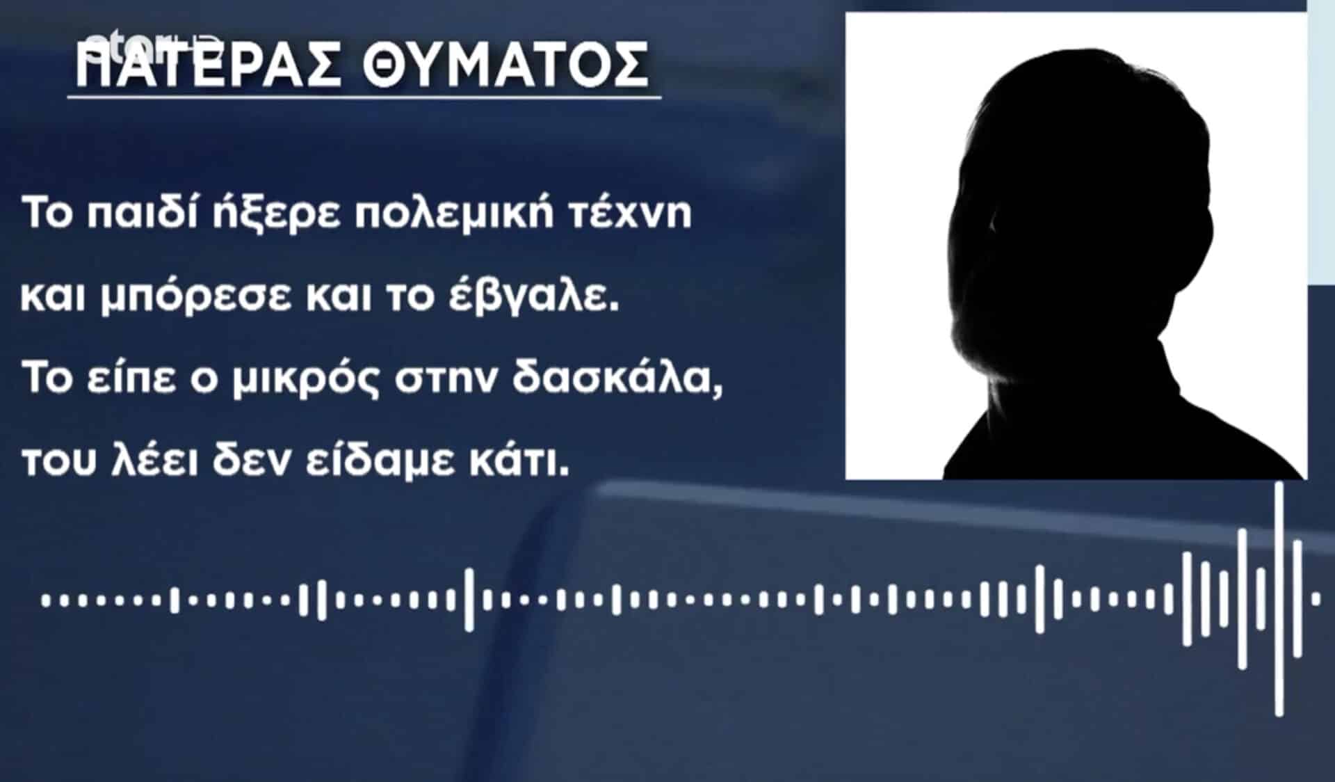 «Το παιδί να μην μπορεί να πάρει ανάσα. ;Hξερε πολεμική τέχνη και μπόρεσε και το έβγαλε. Το είπε ο μικρός στην δασκάλα, του είπε “Δεν είδαμε κάτι”. Είναι σοκ, γιατί καταλαβαίνει ότι δεν μπορούσε να πάρει ανάσα», δήλωσε.