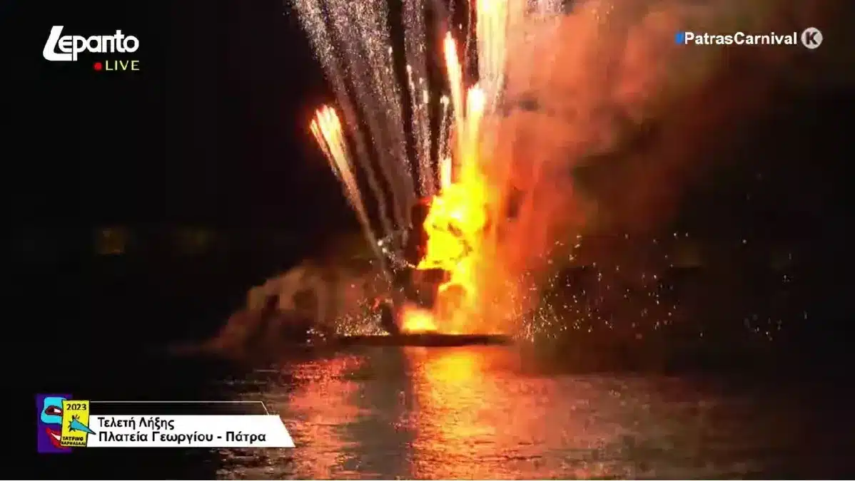 Στον μόλο του Αγίου Νικολάου, στο βόρειο λιμάνι, έπεσε η αυλαία του Πατρινού Καρναβαλιού 2023.