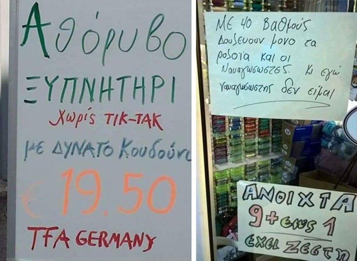 Εμείς κατά καιρούς συλλέγουμε ό,τι νέο αλλά και κλασικό υπάρχει και σας το παρουσιάζουμε για να σας υπενθυμίσουμε ότι η ελληνική κουλτούρα είναι μοναδική στον κόσμο, διότι σε καμία άλλη χώρα δεν πρόκειται να συναντήσετε τέτοιες πινακίδες.