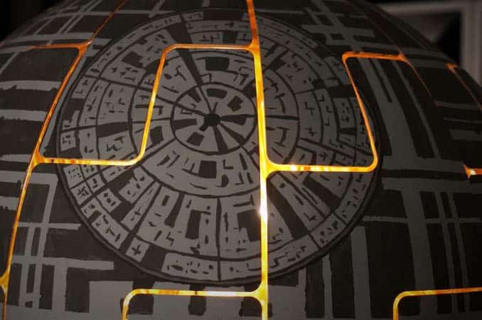 Έχοντας βέβαια και λίγη βοήθεια από τον φίλο της, η κοπέλα με το ψευδώνυμο Lylelo μετέτρεψε το φωτιστικό στο γνωστό σε όλους μας Death Star! Δείτε μερικές φωτογραφίες από την διαδικασία μετατροπής του. Αν θέλετε να το φτιάξετε κι εσείς, δείτε τις αναλυτικές οδηγίες στο blog της.