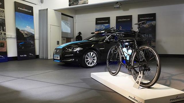 Η Βρετανική κατασκευαστική των σπορ αυτοκινήτων δεν δημιουργεί ποδήλατα, αλλά επέτρεψε στην εταιρεία ποδηλάτων Pinarello να χρησιμοποιήσει την αεροδυναμική της σήραγγα το 2014, για να φτιάξει το φοβερό Dogma F8 racer. Ως χορηγός της ομάδας Sky στο Tour de France, η Jaguar είναι γνωστή για το ότι ακολουθεί τους ποδηλάτες της με επιπλέον ποδήλατα και εξαρτήματα που τοποθετούνται πάνω σε μια F- type coupe ή σε μία XF Sportbrake (όπως στη φωτογραφία).