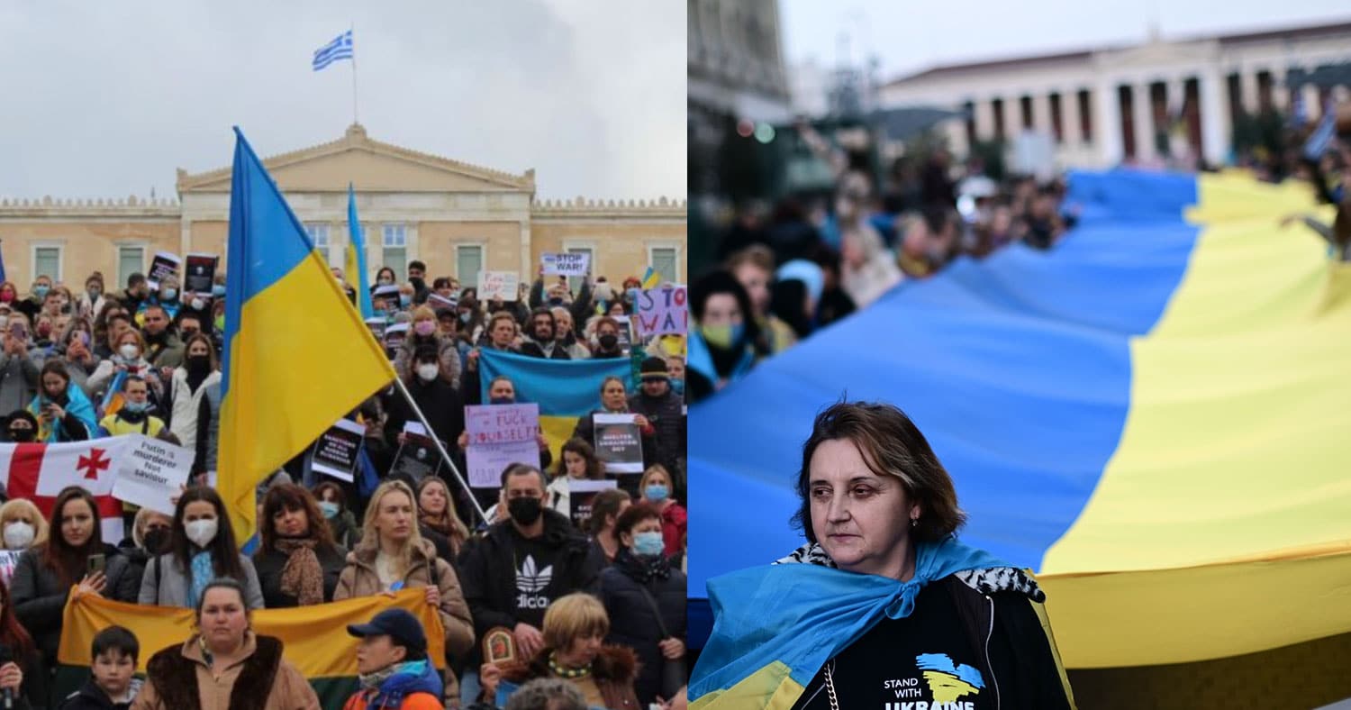 Έναν χρόνος μετά την εισβολή της Ρωσίας στην Ουκρανία κατά την οποία σκοτώθηκαν δεκάδες χιλιάδες άμαχοι και μετατράπηκαν πόλεις σε ερείπια, Ουκρανοί που ζουν στην Ελλάδα συγκεντρώθηκαν στα Προπύλαια και πραγματοποίησαν πορεία προς το Σύνταγμα.