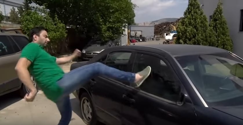 Ο Έλληνας χρήστης του YouTube προσπαθεί να σπάσει το τζάμι από μια Mercedes E Class και μας δείχνουν πως γίνεται.