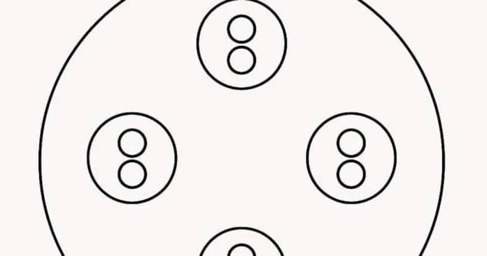 Αρχικά, παρατηρούμε έναν μεγάλο εξωτερικό κύκλο. Μέσα σε αυτόν υπάρχουν πέντε μεσαίου μεγέθους κύκλοι, οι οποίοι σχηματίζουν μια κυκλική διάταξη. Ο καθένας από αυτούς περιέχει δύο μικρούς κύκλους που σχηματίζουν τον αριθμό «8». Άρα, σε κάθε έναν από τους πέντε κύκλους υπάρχουν δύο ακόμη μικρότεροι κύκλοι.