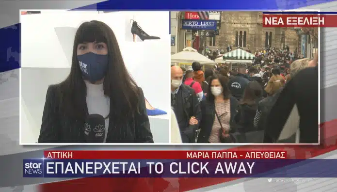 Όπως μετέδωσε η Μαρία Παππά από κατάστημα λιανικής στο Κολωνάκι, στο κεντρικό δελτίο ειδήσεων του Star με τη Μάρα Ζαχαρέα, η λύση της παραλαβής εκτός του καταστήματος – click away – έχει επανέλθει στις συζητήσεις.