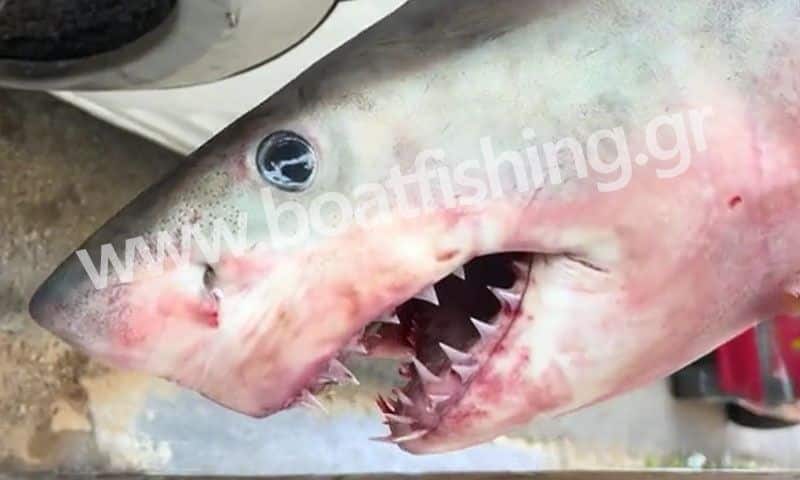 Στα δίχτυα ενός ψαρά έπεσε ένας εντυπωσιακός λευκός καρχαρίας στην περιοχή Πόρτο Λάφια της νότιας Εύβοιας, προκαλώντας θαυμασμό στους κατοίκους της περιοχής.