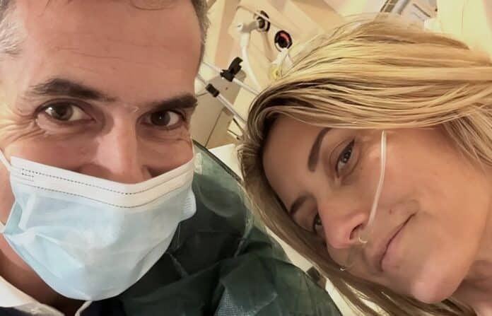 Ο σύζυγός της, Κώστας Μπακογιάννης, ανέβασε φωτογραφία από τη ΜΕΘ, ευχαριστώντας όσους έστειλαν μηνύματα και ευχές για καλή ανάρρωση.
