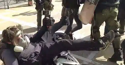 Ο συγκεκριμένος φωτορεπόρτερ, λίγα δευτερόλεπτα πριν, είχε δεχθεί χτύπημα από άλλον αστυνομικό όταν προσπαθούσε να καταγράψει την σκηνή της προσαγωγής και εκείνη την ώρα του εξέφραζε τα παράπονά του.