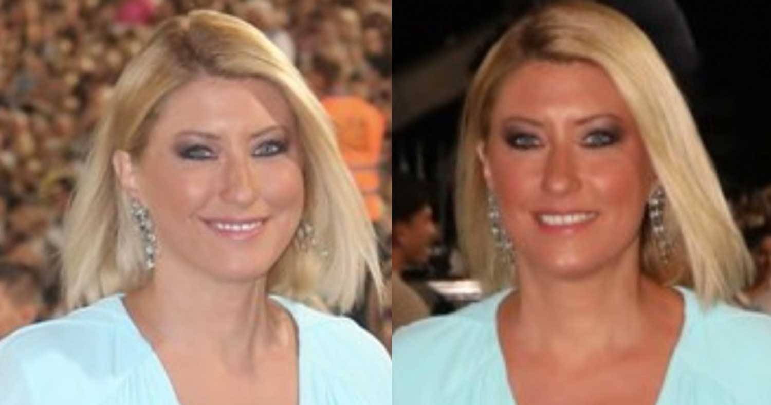 Η δημοσιογράφος και anchorwoman του κεντρικού δελτίου ειδήσεων του ΣΚΑΪ επέλεξε για την εμφάνισή της ένα αέρινο μάξι φόρεμα σε γαλάζιο με ανοιχτό ντεκολτέ, ζώνη στη μέση και ενσωματωμένη κάπα.