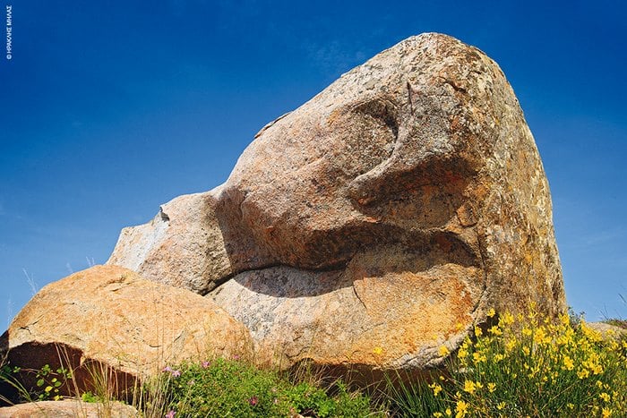 Τη μοναδικότητα του τοπίου υπογραμμίζουν οι μεγάλες (tafoni) και μικρότερες (alveoles) κοιλότητες στη γρανιτική μάζα, προϊόντα αιολικής και χημικής διάβρωσης».