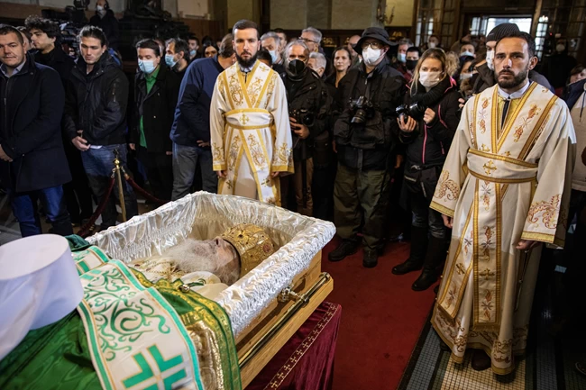 Πιστοί, κυριολεκτικά ο ένας πάνω στον άλλο, λίγοι εκ των οποίων φορούν μάσκα, μετέβησαν στο σημείο για να πουν το τελευταίο αντίο στον Πατριάρχη των Σέρβων Ειρηναίο, ο οποίος απεβίωσε την Παρασκευή (20/11) από επιπλοκές του κορονοϊού και εκτίθεται σήμερα σε λαϊκό προσκύνημα.