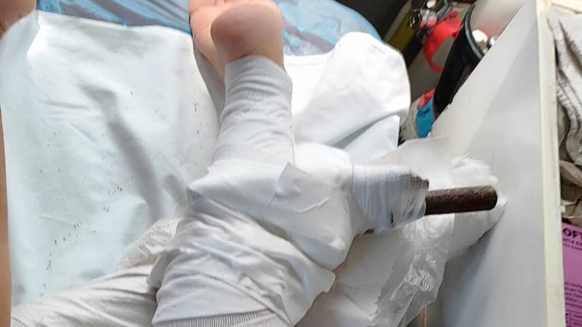 Λίγο αργότερα, έφτασε ασθενοφόρο, του οποίου το πλήρωμα προχώρησε στην ακινητοποίηση του τραυματισμένου ποδιού και στην επίδεση για τον έλεγχο της αιμορραγίας. Η 26χρονη διακομίστηκε με ασθενοφόρο του ΕΚΑΒ στο Νοσοκομείο Πολυγύρου, όπου θα υποβληθεί στις απαραίτητες εξετάσεις και θα αφαιρεθεί το ξένο σώμα, σύμφωνα με τα πρωτόκολλα που τηρούνται σε τέτοιες περιπτώσεις.