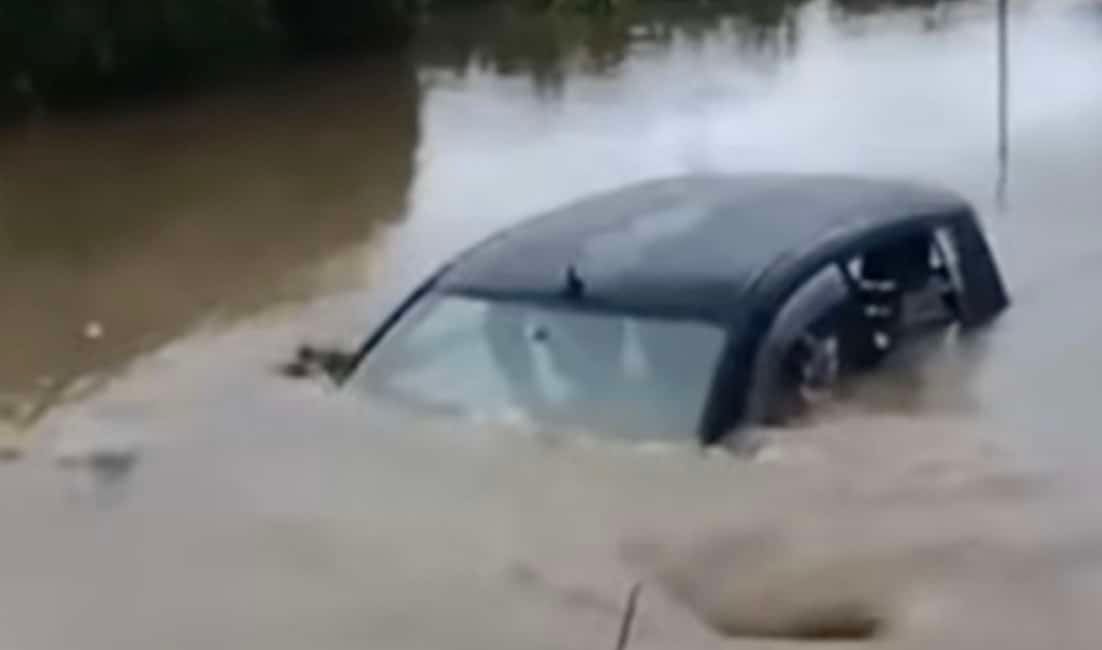 Οι επιβάτες απεγκλωβίστηκαν από το αυτοκίνητο, το οποίο είχε βυθιστεί σε πλημμυρισμένο σημείο, με τις εικόνες της επιχείρησης να αποτυπώνονται σε βίντεο.