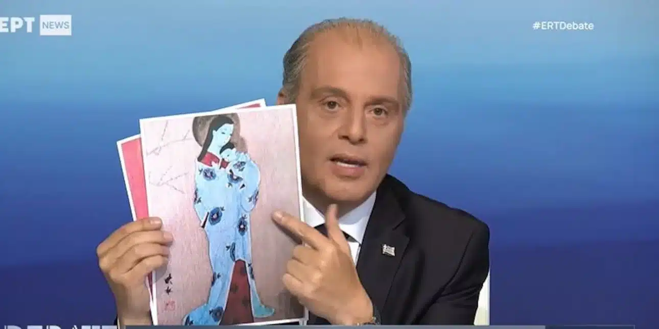 Με μια εικόνα της Παναγίας… γκέισα από βιβλίο του δημοτικού αντέδρασε ο Κυριάκος Βελόπουλος, όταν ρωτήθηκε στο debate για το αν οι θέσεις του «υπαγορεύονται μόνο από την ορθοδοξία».