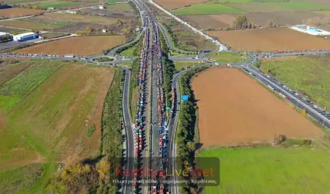 Συγκλονιστικό βίντεο από ψηλά: Το μεγάλο αγροτικό μπλόκο της Καρδίτσας στον Ε65