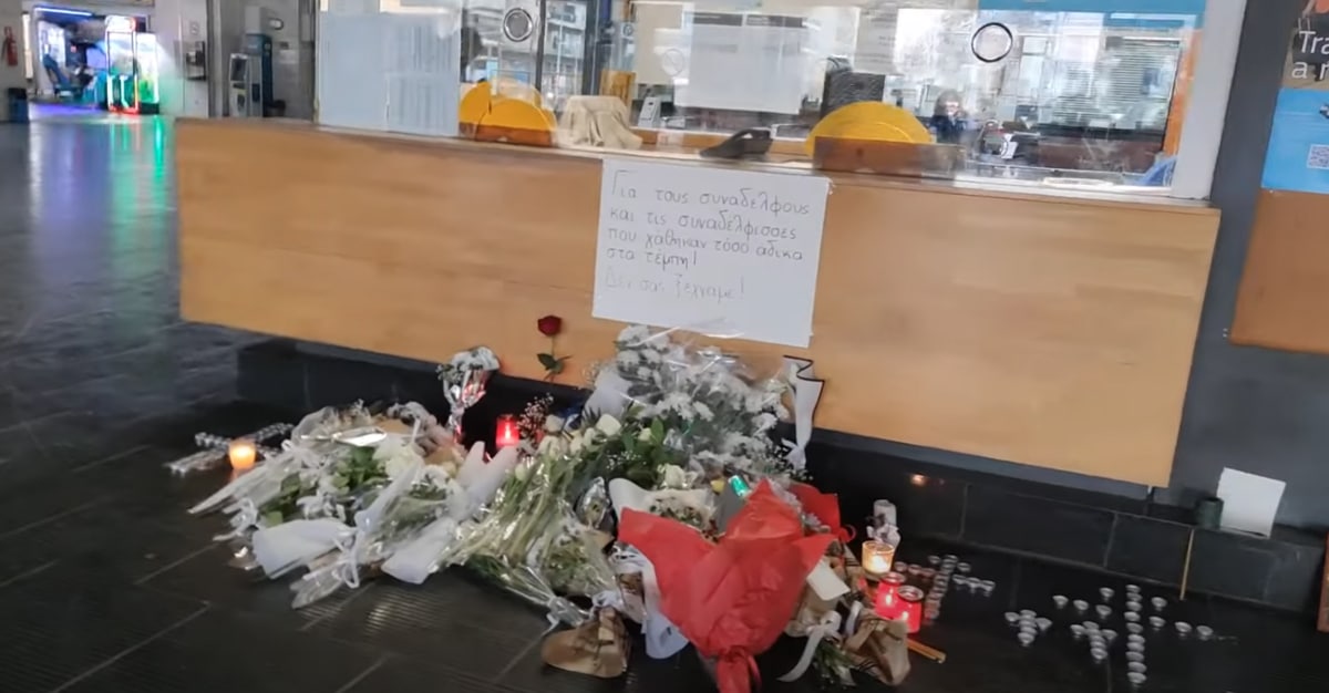 Άφησε αρχικά ένα λευκό λουλούδι στο μικρό άτυπο μνημείο που στήθηκε εντός του Σιδηροδρομικού Σταθμού Θεσσαλονίκης, κατά τη διάρκεια της κινητοποίησης των Σωματείων Ιδιωτικών Υπαλλήλων Θεσσαλονίκης και Μετάλλου Κεντρικής Μακεδονίας.