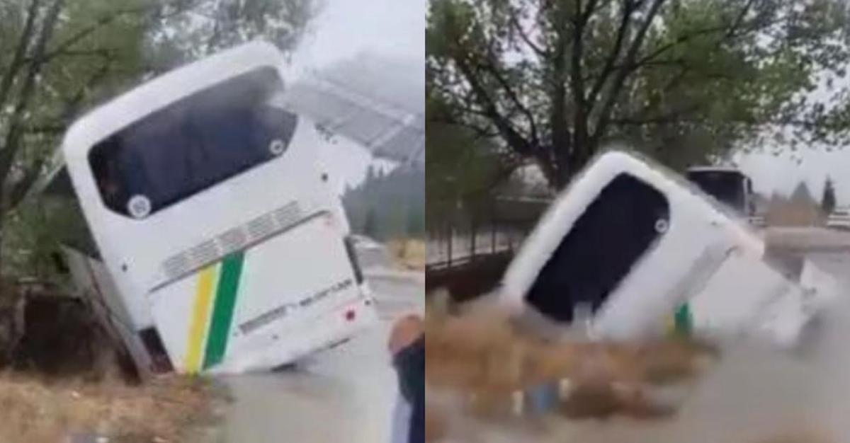 Τα ορμητικά νερά στους παρόχθιους του Κραυσίδωνα είχαν σαν αποτέλεσμα να υποχωρήσει το έδαφος και η γη να «καταπιεί» ολόκληρο λεωφορείο το οποίο ήταν σταθμευμένο δίπλα στο πεζοδρόμιο.