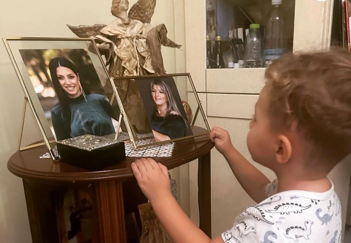 Στην φωτογραφία ο μικρούλης γιος της Αθήνας κοιτάζει στεναχωρημένο την μαμά του στην φωτογραφία. Κάτω από την φωτογραφία ο Νίκος γράφει: