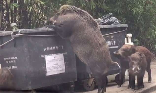 Κυκλοφόρησε πρόσφατα ένα βίντεο που δείχνει ένα τεράστιο άγριο γουρούνι να ψάχνει για φαγητό σε έναν κάδο σκουπιδιών δίπλα σε ένα σχολείο στο Χονγκ Κονγκ.