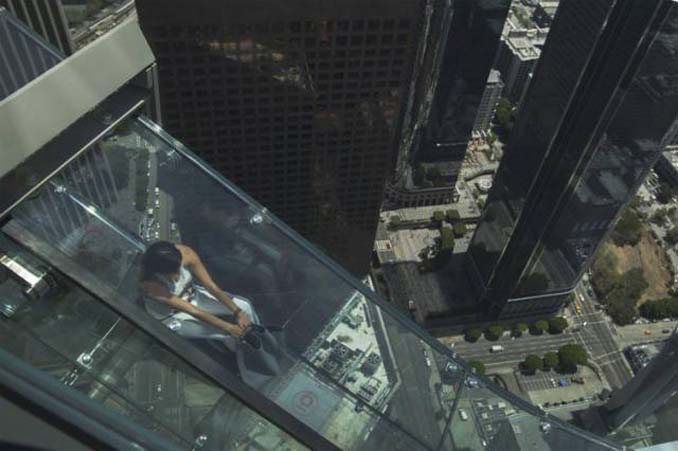 Η γυάλινη αυτή τσουλήθρα στο Λος Άντζελες υπόσχεται να τεστάρει το θάρρος κάθε λάτρη της αδρεναλίνης που επισκέπτεται το κτήριο U.S. Bank Tower. Ο λόγος για την SkySlide που έχει μήκος 13 μέτρα και είναι κατασκευασμένη από τριπλό γυαλί πάχους 3,175 εκατοστών που μπορεί να αντέξει ανέμους με την ισχύ ενός τυφώνα, και μεταλλικό σκελετό που κρατάει κάθε κομμάτι ενωμένο με τα υπόλοιπα.