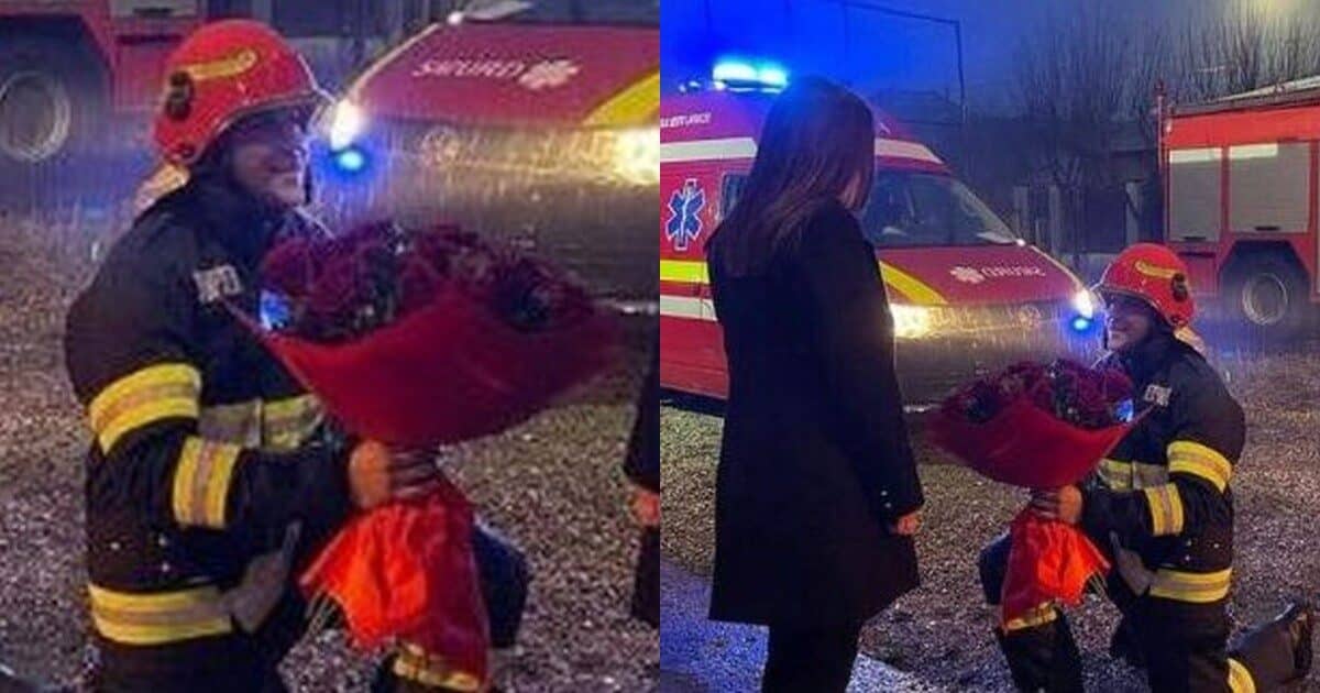Επηρεασμένος από τη μαγεία των γιορτών, ένας πυροσβέστης από τις Μαραμούρες, στη Βόρεια Ρουμανία, επέλεξε να κάνει έκπληξη στην κοπέλα του με μια μοναδική πρόταση γάμου εν ώρα δουλειάς.
