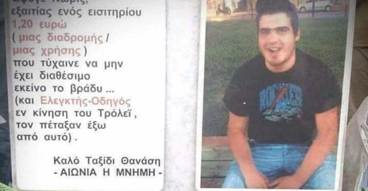 Χρέος μας να μην ξεχάσουμε κανέναν Θανάση. Κανένα θύμα του συστήματος το οποίο προστατεύει όσους ληστεύουν εκατομμύρια και που δολοφονεί παιδιά της βιοπάλης που δεν έχουν να πληρώσουν εισιτήριο.