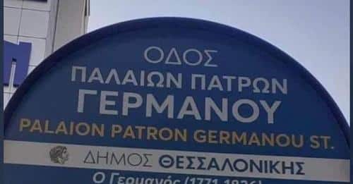 Γκάφα ολκής σε πινακίδα του δήμου Θεσσαλονίκης, αφιερωμένη στον Παλαιών Πατρών Γερμανό, γίνεται viral στο twitter.