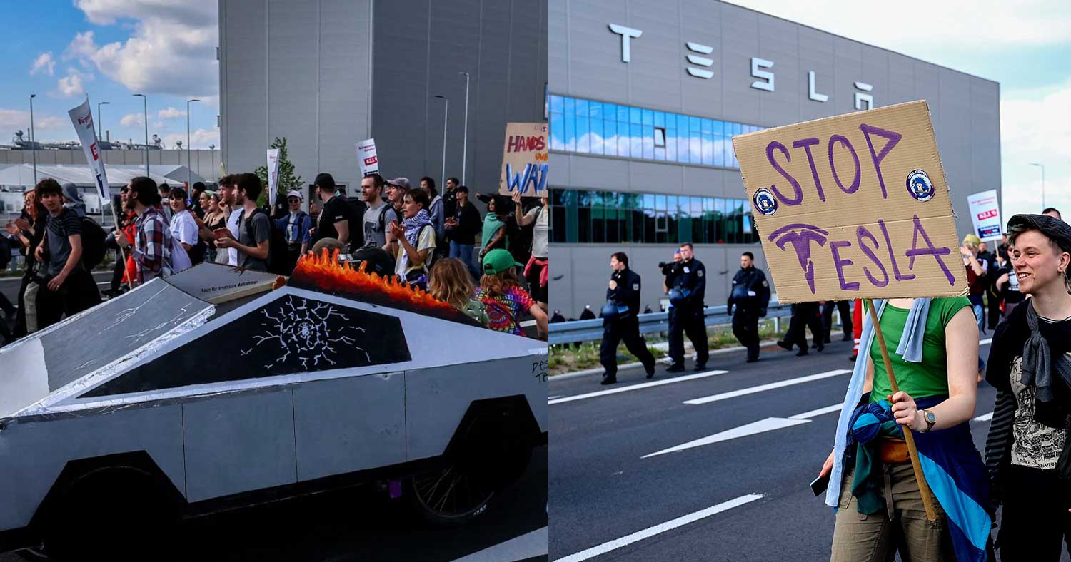 Η κατασκευή του γερμανικού εργοστασίου είχε εξαρχής προκαλέσει έντονες διαμαρτυρίες για τις επιπτώσεις στο περιβάλλον, καθώς και έντονη συζήτηση σχετικά με τα αντισταθμιστικά οφέλη που συνεπάγεται η ανάπτυξη μιας πράσινης οικονομίας. Κατά τη διάρκεια διαδηλώσεων, ο ιδιοκτήτης της Tesla, Ελον Μασκ, επέκρινε την τοπική αστυνομία επειδή άφησε… ελεύθερους «αριστερούς διαδηλωτές».