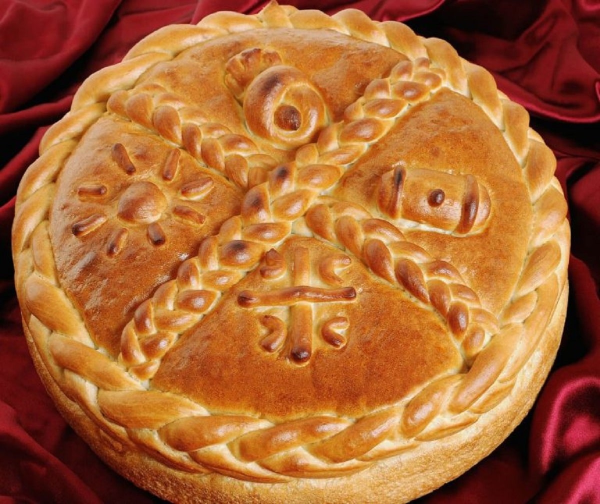 Πλάθουν το ζυμάρι και παίρνουν τη μισή ζύμη και φτιάχνουν μια κουλούρα. Με την υπόλοιπη φτιάχνουν σταυρό με λωρίδες από τη ζύμη. Στο κέντρο βάζουν ένα άσπαστο καρύδι. Στην υπόλοιπη επιφάνεια σχεδιάζουν σχήματα με το μαχαίρι ή με το πιρούνι, όπως λουλούδια , φύλλα, καρπούς, πουλάκια, τα οποία συμβολίζουν την αφθονία που θέλουν να έχουν στην παραγωγή των ζώων και της σοδειάς του σπιτιού τους. Μερικοί συνηθίζουν στη μέση του χριστόψωμου να βάζουν ένα άβαφο αυγό, το οποίο συμβολίζει τη γονιμότητα.