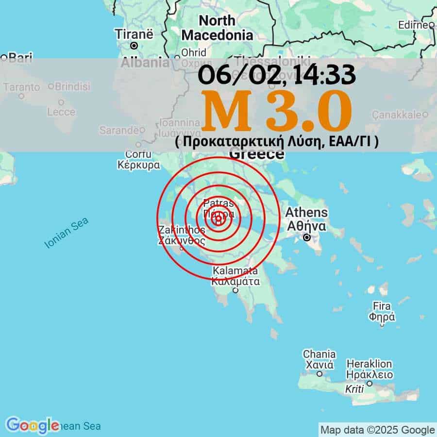 Σεισμική δόνηση 3,0 ρίχτερ σημειώθηκε στις 14.33 και έγινε αισθητή στην Πάτρα