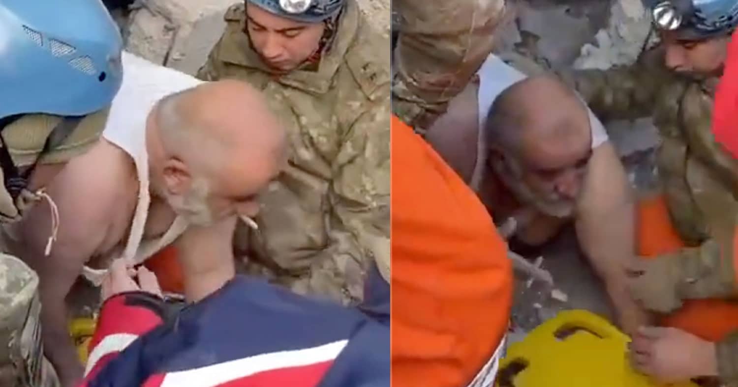 Yer: Adıyaman. Askerlerimiz tarafından enkaz altından ağzında sigara ile kurtarılan yaşlı bir adam, tüm ısrarlara rağmen sigarayı bırakmadı. pic.twitter.com/vUQm6Zr7KR