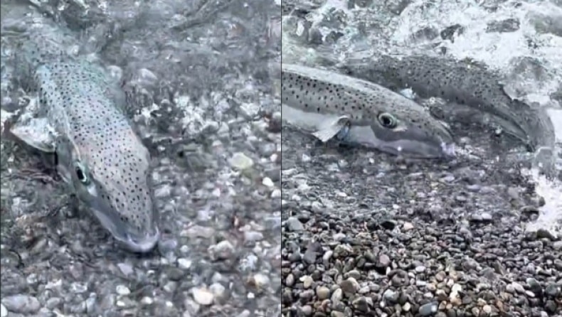 Σε νέο βίντεο που κυκλοφόρησε στο TikTok φαίνονται τα λαγόψαρα να κολυμπούν και να βγαίνουν έξω από τη θάλασσα, εκεί που σκάει το κύμα, παρά την παρουσία των λουομένων.