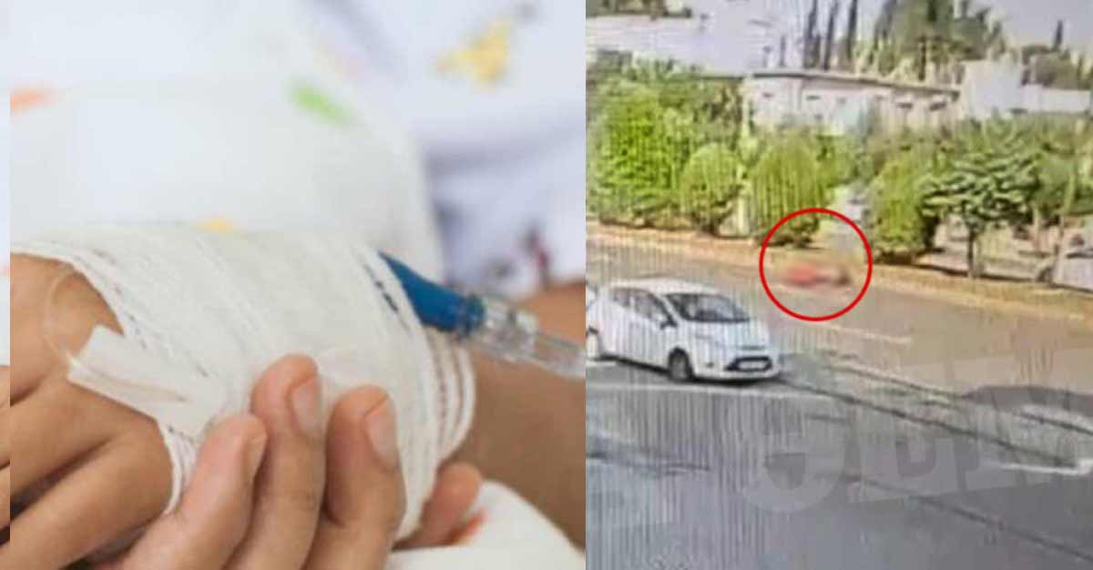 Εκείνη την στιγμή, όπως φαίνεται και στο βίντεο, ενώ η ηλικιωμένη με το παιδί βρίσκονταν στην μεσαία λωρίδα, ένα διερχόμενο μηχανάκι, τους παρασύρει και από την σύγκρουση πέφτουν στο έδαφος. Λίγα δευτερόλεπτα αργότερα πέφτει και ο οδηγός της μηχανής.