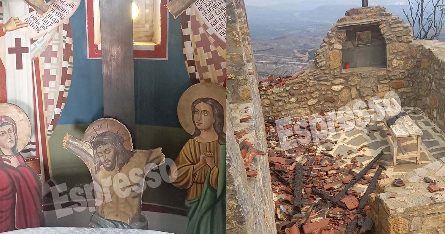 «Ανέβηκα στο βουνό αμέσως μετά τις πυρκαγιές και ήμουν ο πρώτος που αντίκρισε το θέαμα της βεβήλωσης του Εσταυρωμένου! Βρισκόταν με κομμένα τα χέρια και παρατημένο το σώμα του Χριστού στο πάτωμα, ριγμένο στο κάτω μέρος του Σταυρού, πίσω από την Αγία Τράπεζα. Δεν μπορούσα να πιστέψω αυτό που έβλεπα, δεν μπορούσε να βάλει το μυαλό μου ποιος θα μπορούσε να κάνει κάτι τέτοιο. Την τελευταία φορά που είδα τον Χριστό ανέγγιχτο στον Σταυρό ήταν μια ημέρα πριν ξεσπάσει η μεγάλη πυρκαγιά. Μετά την κατάσβεσή της επισκέφτηκα το παρεκκλήσι (χθες, Πέμπτη) για να δω το μέγεθος της ζημιάς. Μπαίνοντας στο εσωτερικό του ναού, παρότι ολόκληρη η εξωτερική του πλευρά και το κιόσκι με τα κεραμίδια είχαν γίνει ρημαδιό, διαπίστωσα ότι ήταν ανέπαφος. Το ίδιο και η Αγία Τράπεζα. Δυστυχώς, όμως, ο Εσταυρωμένος ήταν κομμένος και πεταμένος στο πάτωμα. Ειδοποίησα αμέσως τον μητροπολίτη Αλεξανδρουπόλεως, Ανθιμο, ο οποίος μου είπε ότι πόνεσε η ψυχή του. Οπως και η ψυχή όλων μας. Ολοι οι κάτοικοι της Μάκρης είναι αναστατωμένοι και λυπημένοι. Δεν το χωράει το μυαλό μας.