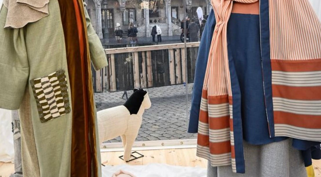 Αντί για την κλασική ιερή απεικόνιση, η νέα φάτνη είναι μια ημιδιαφανής εγκατάσταση, φτιαγμένη εξ ολοκλήρου από ανακυκλωμένα υφάσματα, σχεδιασμένη από την αρχιτέκτονα εσωτερικών χώρων των Βρυξελλών, Βικτόρια-Μαρία Γκέιερ.