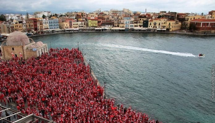 Η αρχή έγινε στο 1ο Γυμνάσιο Χανίων από όπου σχηματίστηκε ένα κατακόκκινο “ποτάμι” που πέρασε απο τους κεντρικούς δρόμους προς το παλιό λιμάνι για να επιστρέψει στο 1ο Γυμνάσιο για το μεγάλο πάρτι.