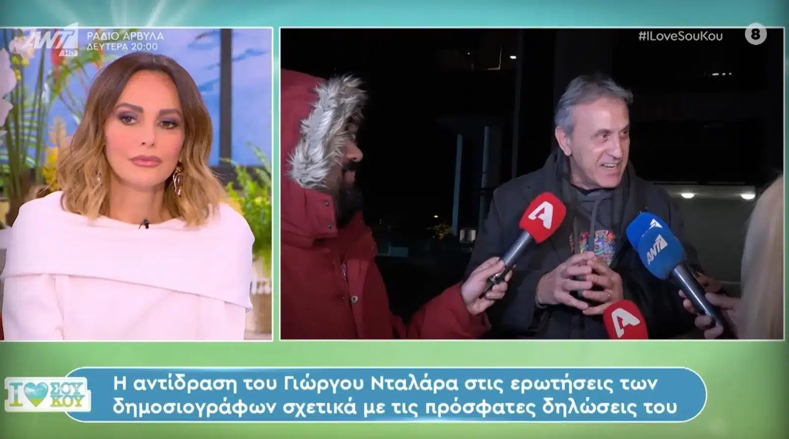 «Καλά κάνουν όσοι αντιδρούν και καλά κάνω κι εγώ που λέω τις δικές μου απόψεις. Να ρωτήσω κάτι: αυτό που κάνετε τώρα δεν το βρίσκετε αρκετά γελοίο; Για καθένα σας προσωπικά αλλά και για τα κανάλια που εκπροσωπείτε;», είπε χαρακτηριστικά.