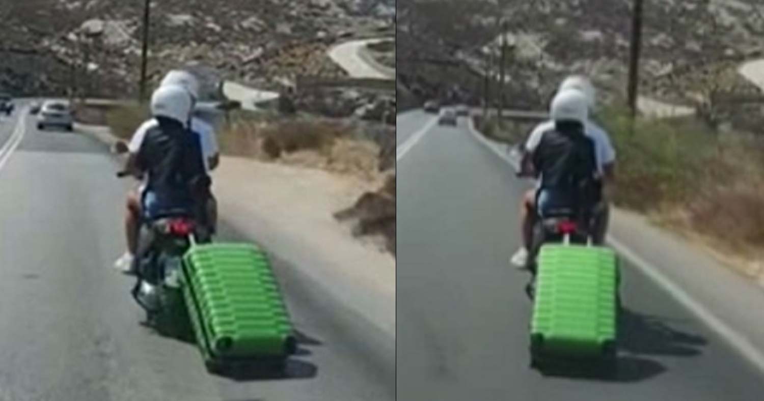 Για μία ακόμα φορά viral για λάθος λόγους η Ελλάδα, καθώς κάνει τον γύρο του διαδικτύου βίντεο με τουρίστα να οδηγεί μηχανή και από πίσω να σέρνει την βαλίτσα του που είχε ροδάκια.
